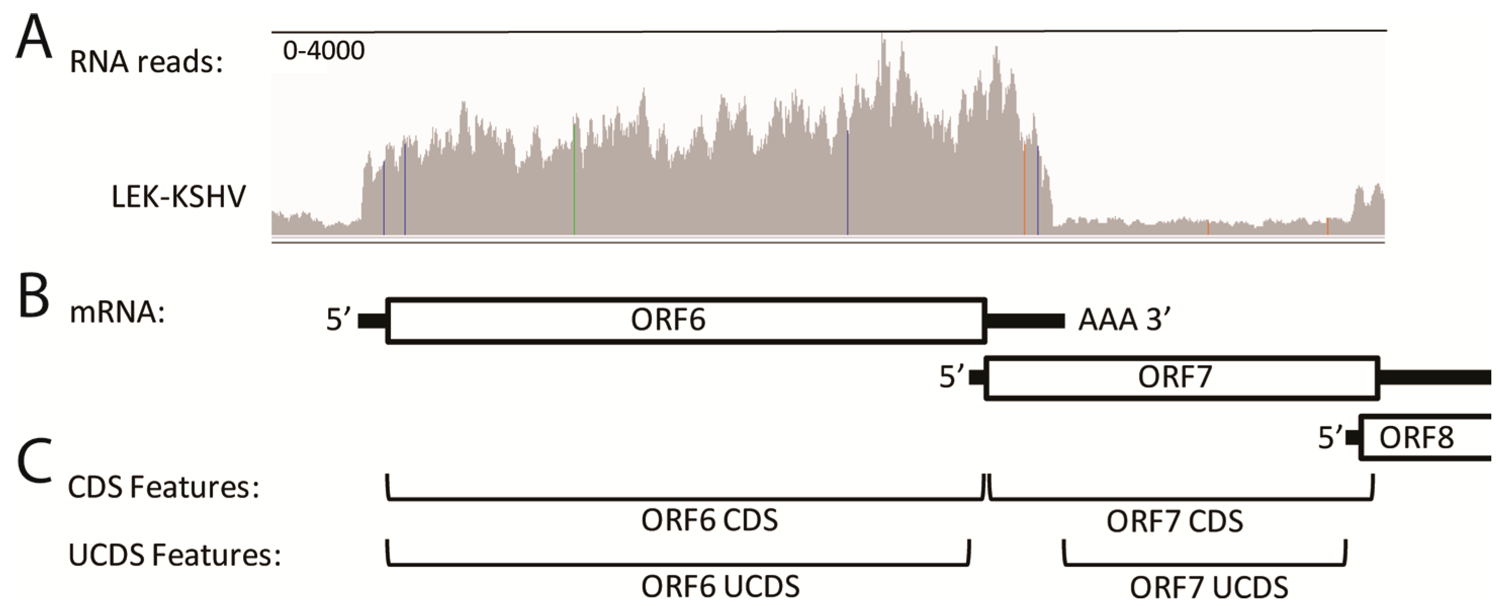 2.6. Quantitation of Overlapping Transcripts Terminating at Common Poly(A) Sites (ORF7-K3)