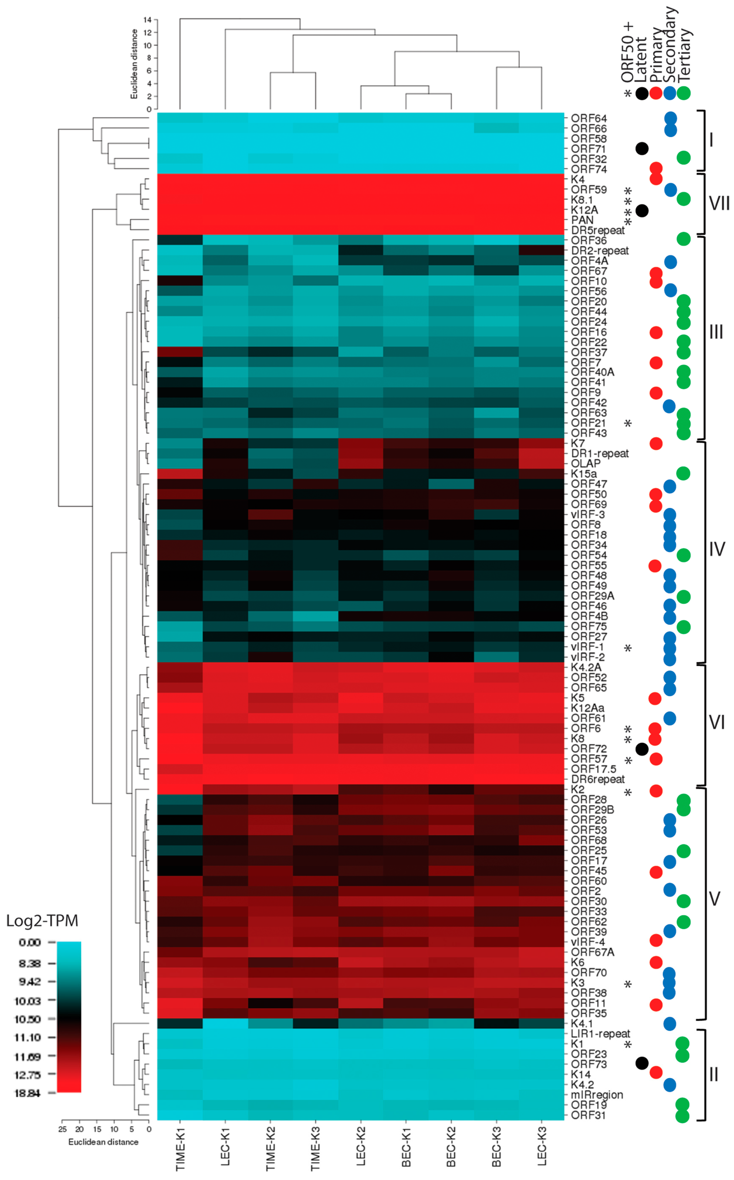 2.3. RNA-seq Analysis of KSHV Transcripts