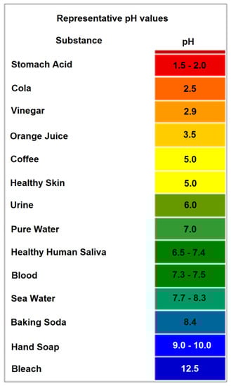 - Department of Ecology-State of Washington. ECOconnect, Let’s Talk Science, a pH Solution. Available online: http://ecologywa.blogspot.com/2014/02/lets-talk-science-ph-solution.html (accessed on 6 December 2016).