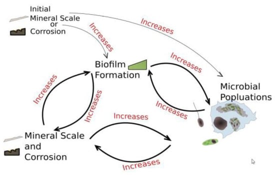 Additionally, as depicted in the following diagram (Figure 10), scale deposits or corrosion product formation generate safe harbors for under-deposit microbiological growth and replication. This process becomes a self-perpetuating loop with additional microbe populations available to colonize newly-formed deposits of either type.