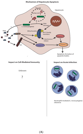 - Rogers, H.W.; Callery, M.P.; Deck, B.; Unanue, E.R.; Rogers, H.W.; Gallery, M.P.; Deck, B.; Unanue2, E.R. Listeria monocytogenes induces apoptosis of infected hepatocytes. J. Immunol. 1996, 156, 679–684. [Google Scholar] [PubMed]