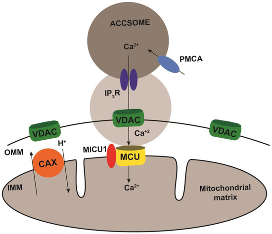 - De Stefani, D.; Raffaello, A.; Teardo, E.; Szabo, I.; Rizzuto, R. A forty-kilodalton protein of the inner membrane is the mitochondrial calcium uniporter. Nature 2011, 476, 336–340. [Google Scholar] [CrossRef] [PubMed]