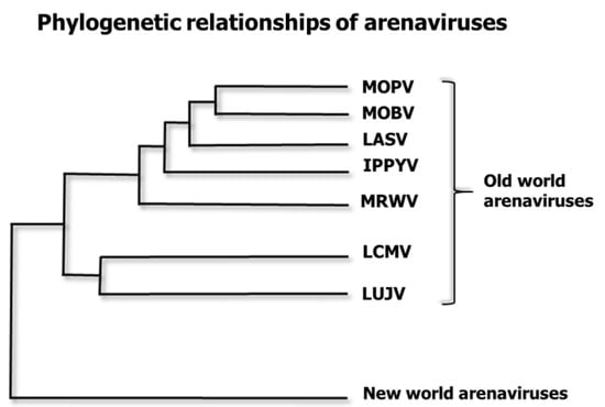 - Emonet, S.; Lemasson, J.J.; Gonzalez, J.P.; de Lamballerie, X.; Charrel, R.N. Phylogeny and evolution of old world arenaviruses. Virology 2006, 350, 251–257. [Google Scholar] [CrossRef] [PubMed]
