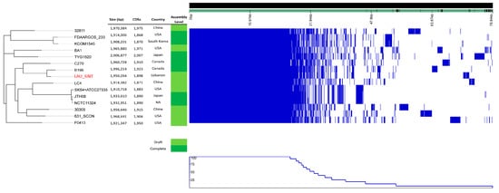 All 17 NCBI available genomes (accessed on 25 October 2018) listed as SI were included in this study (Table 1). Our results showed that 567_SINT and F0395 listed as SI on NCBI, belonged to SC. We additionally confirmed this through chromosomal comparison and whole-genome based single nucleotide polymorphism (wgSNPs) analysis where 567_SINT and F0395 clustered with SC (Figure S1).