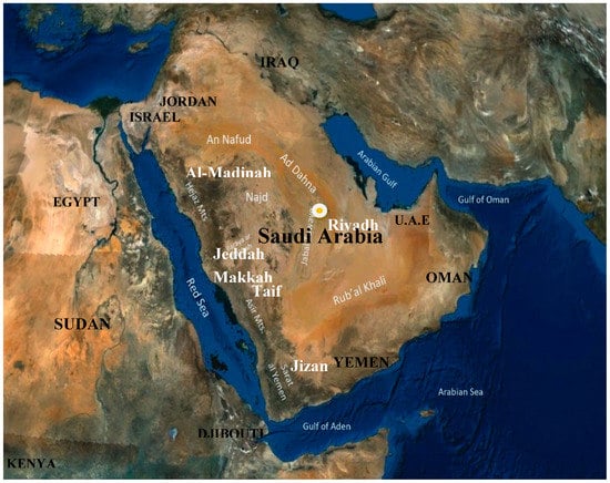 In 1999, Lanciotti et al. found this virus to be responsible for an outbreak of encephalitis in two fatal human cases from northeastern USA in late summer; and suggest a closely relation between this outbreak in the USA to a WNV infection which was isolated from a dead goose in Israel in 1998 []. The first cases of WNV in horses was identified in Egypt and France in the 1960s []; ever since, WNV has had significant public health impact worldwide due to its resurgence and dynamic epidemiologic features in humans and animals. Between 2008 and 2009, a study in Iran identified WNV antibodies in horses, and the results confirmed the highest activity of the virus reported in the Western and Southern Provinces with seroprevalences of up to 88% in some areas of Iran []. Although human cases and/or animal infections with WNV including horses have also been reported in Jordan and Lebanon (direct and close neighbors of Saudi Arabia) between 2000 and 2014 [,,]; however, the reported WNV in patients or horses in these areas might have circulated in natural transmission cycles with close relationship to the WNV isolated from human and horses in Jordan, Lebanon, and Iran in 2000, 2010, and 2014, respectively. Humans and horses (incidental hosts), are unable to develop sufficient viremia to infect mosquitoes, hence, they are not included in the WNV lifecycle [].
