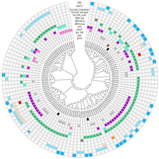 2.1. Prevalence and Diversity of ICEs and IMEs in S. suis Strains Belonging to Various Serotypes