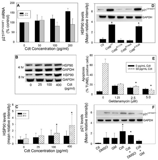 2.3. Cdt-Induced Increases in p21CIP1/WAF1 Levels and Induction of Apoptosis Are Blocked by the Chaperone HSP90