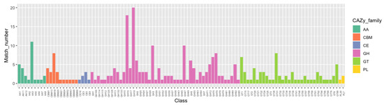 2.5. Carbohydrate-Active Enzyme (CAZyme) Family Analysis