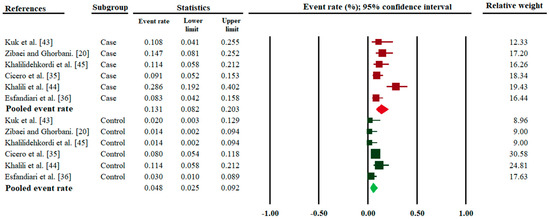| Cicero et al. [39] | Italy | 44.6 ± 11.1 | 48.1 ± 15.6 | 132 | 12 (9.1) | 287 | 23 (8.0) | 0.7 |