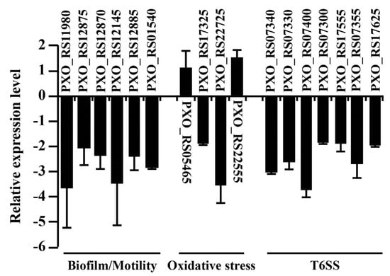 3.3. RNA-Sequencing Analysis Showed that RR35 Regulates Genes Involved in Biofilm Formation, Motility, and Tolerance against Oxidative Stress in Xoo