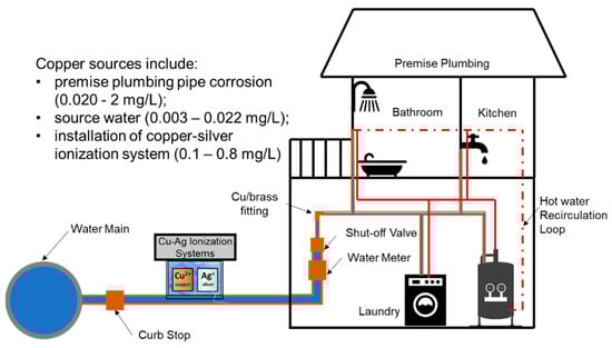 Copper sources in premise plumbing [,,,]. Note that Cu-Ag Ionization systems can be used in either point of entry or hot water distribution networks.