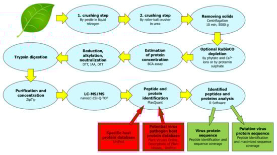 Sample processing scheme used in this work for efficient confirmation of viral proteins from plant leaf tissue.
