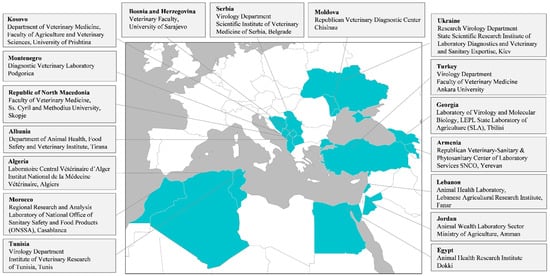 MediLabSecure is an EU-funded project whose main objective is to create a framework for collaboration to promote arbovirus surveillance under a One Health approach in 19 countries of the Mediterranean and Black Sea regions [18,19]. Since the beginning of the project in 2014, the MediLabSecure animal virology network has implemented numerous actions to enhance capacity building of veterinary labs to face health threats caused by emerging arboviruses.