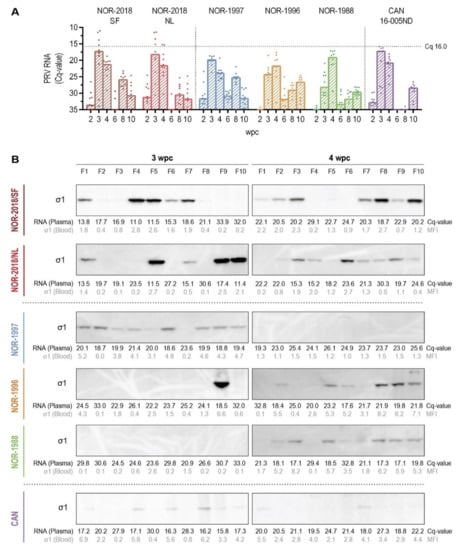 2.3. High-Level Plasma Viremia after Infection with Norwegian 2018 Isolates