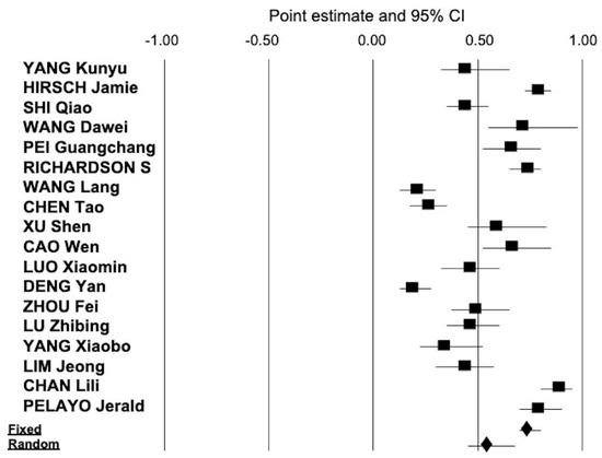 - DerSimonian, R.; Laird, N. Meta-analysis in clinical trials. Control. Clin. Trials 1986, 7, 177–188. [Google Scholar] [CrossRef]
