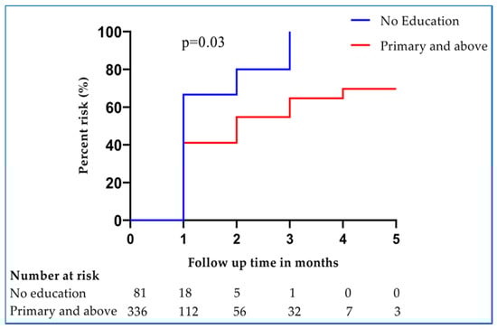Hazard proportions for anemia during pregnancy after the first dose of IPTp-SP stratified by the level of education.