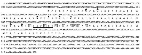 A 938 bp cDNA sequence from HLMLP was obtained by 5′ RACE that included a complete open reading frame (ORF) and 5′ and 3′ untranslated regions. The 321 bp ORF was predicted to encode 106 amino acids with a predicted molecular mass of 11.3 kDa (Figure 1).