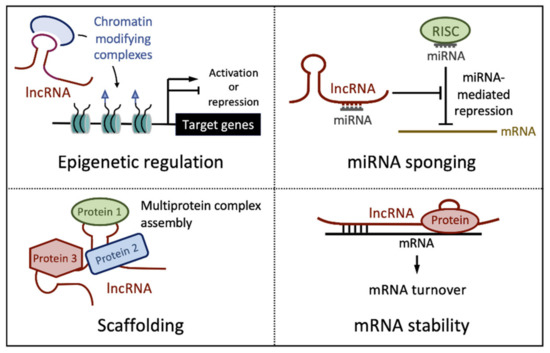 - Ransohoff, J.D.; Wei, Y.; Khavari, P.A. The functions and unique features of long intergenic non-coding RNA. Nat. Rev. Mol. Cell Biol. 2018, 19, 143–157. [Google Scholar] [CrossRef] [PubMed]