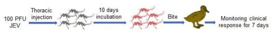 Schematic representation of infection of ducklings by JEV-infected mosquito bites.