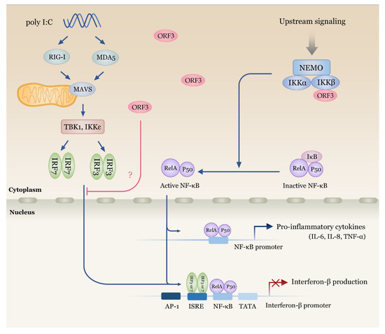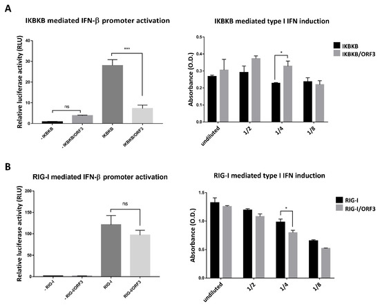 2.4. ORF3 Differently Regulated Type I IFN Production Mediated by IKBKB and RIG-I
