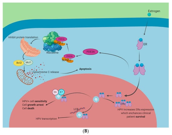 - Chung, S.-H.; Wiedmeyer, K.; Shai, A.; Korach, K.S.; Lambert, P.F. Requirement for Estrogen Receptor Alpha in a Mouse Model for Human Papillomavirus-Associated Cervical Cancer. Cancer Res. 2008, 68, 9928–9934. [Google Scholar] [CrossRef] [PubMed]
