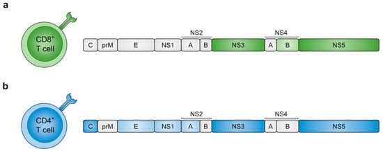 - An, J.; Zhou, D.-S.; Zhang, J.-L.; Morida, H.; Wang, J.-L.; Yasui, K. Dengue-specific CD8+ T cells have both protective and pathogenic roles in dengue virus infection. Immunol. Lett. 2004, 95, 167–174. [Google Scholar] [CrossRef]