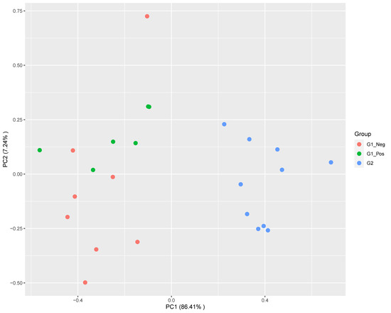 2.5. Non-FIP Cats with and without Detectable FCoV in the MLN (G1_Pos vs. G1_Neg)