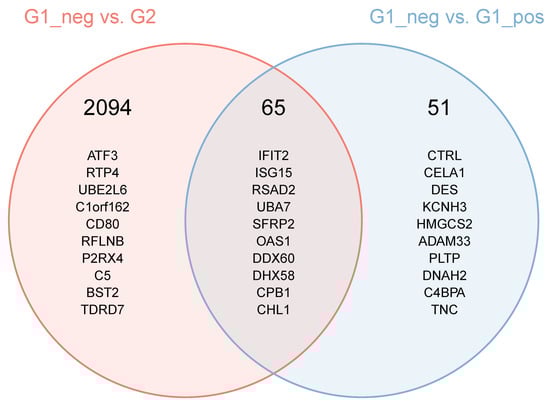 2.6. Overlap Comparison of the Host Response to FCoV in FIP Cats and Non-FIP Cats (G2 vs. G1_Neg and G1_Pos vs. G1_Neg)