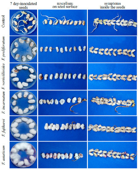 - Pedrozo, R.; Fenoglio, J.J.; Little, C.R. First report of seedborne Fusarium fujikuroi and its potential to cause pre- and post- emergent damping-off on soybean (Glycine max) in the United States. Plant Dis. 2015, 99, 1865. [Google Scholar] [CrossRef]