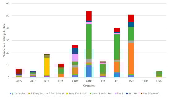 Most published papers originated from countries in the para-Mediterranean area. This was expected given that a significant number of sheep exist in these countries (approximately 15% of the world’s sheep population) [11]. Sheep production systems in these countries are directed towards milk production, which also explains the increased number of papers referring to dairy production and indicates research oriented towards specific needs of agriculture in these countries. Consequently, most papers also originated from scientific establishments in these countries.