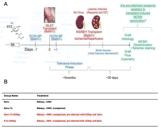 The following are available online at https://www.mdpi.com/2076-0817/9/8/607/s1, Figure S1: Treatment parameters for islet transplants. Parameters related to diabetes induction, islet transplant mass, and ECDIsp cellular dosage. Figure S2: Weights of kidney grafts from indicated groups at 30–35 days post transplant. Figure S3: MCMV serology confirmation. MCMV Multiplexed Fluorometric Immune Assay (MFIA) was conducted on serum of latently infected and non-latently infected B6 mice by Charles River Research.