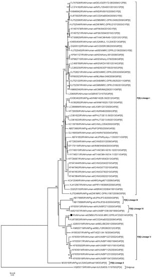 2.2.4. Phylogenetic Analysis of VP1 Gene