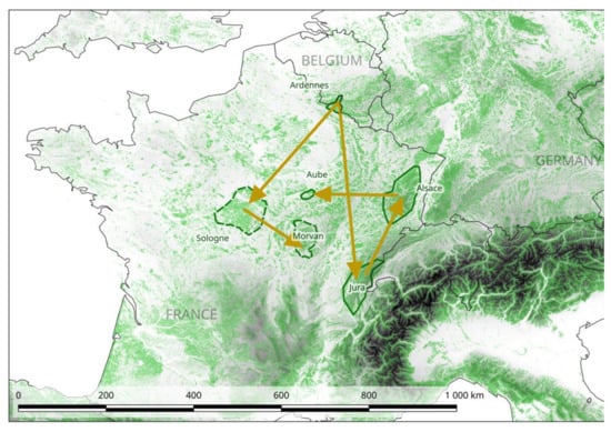 - Vallauri, D.; Grel, A.; Granier, E.; Dupouey, J.L. Les Forets de Cassini. Analyse Quantitative et Comparaison Avec Les Forêts Actuelles; WWF/INRA: Marseilles, France, 2012; p. 64. [Google Scholar]