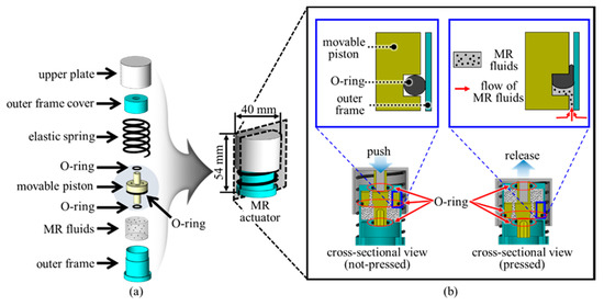 Structure of the proposed MR actuator: (a) Schematic illustration of the proposed MR actuator; (b) Its operating principle.
