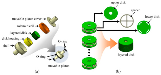 Design of the movable piston: (a) Internal structure; (b) Schematic illustration of the layered disk.
