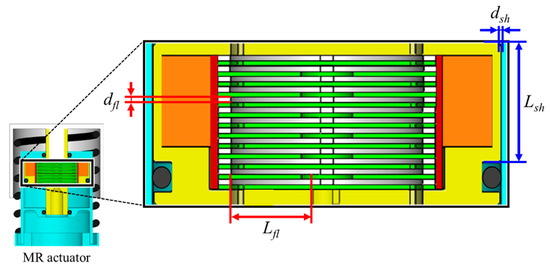 - distance that MR fluids move for shear mode (11.1 [mm]) (Figure 8),