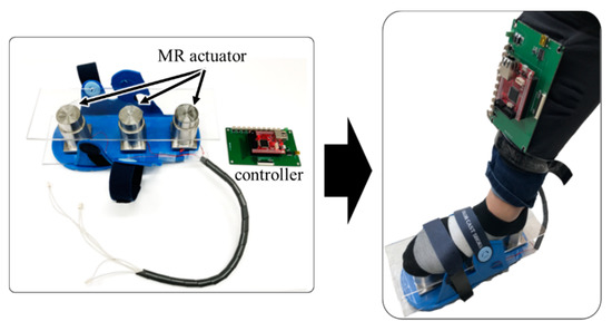 Three MR haptic actuators which are installed to the shoe.