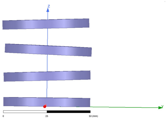 The FEM model is based on 2D axisymmetric geometric as the symmetry of the device allows to do. By using 2D models, the computation time is drastically reduced. Static simulations of two, three, and four ring-shaped magnets were done in order to simulate the magnetic field, as shown in