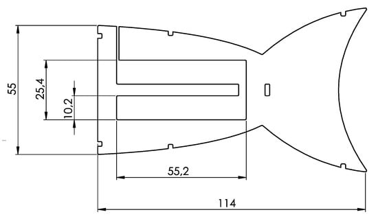 Dimensions of the fish fin structure as the core part of the robot’s body in mm. Rectangle parts represent void spaces down to the neutral plane, providing cavities for the hydrogel.
