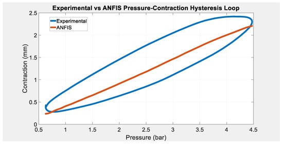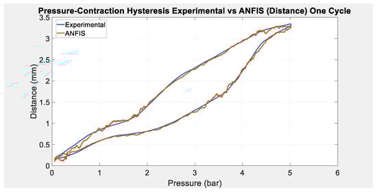 Utilizing the derivative of the input voltage as a secondary input, the ANFIS is able to capture the pressure-contraction hysteresis behavior in PAMs as depicted in Figure 10.
