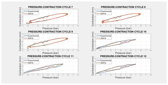 Experimental vs. ANFIS pressure-contraction using the two-input technique for the ANFIS.