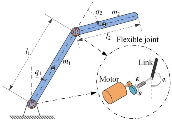 Robot manipulators with flexible joints are widely used in industrial applications due to their light weight, reduced inertia, high speed and compact structure. Joint flexibility generated from the elastic driving (by harmonic reducers, series elastic actuators or cables, etc.) always leads to vibration problem and is unavoidable in modeling, especially in applications with high-precision demands. The singularly perturbed approach has been extensively studied to model and control flexible-joint robot manipulators since it was first proven to be feasible in []. By such a method, the controller can be easily implemented through developing sub-controllers for the two subsystems with precisely known system dynamics, and full-state feedback []. Unfortunately, the actual situation is not so ideal.