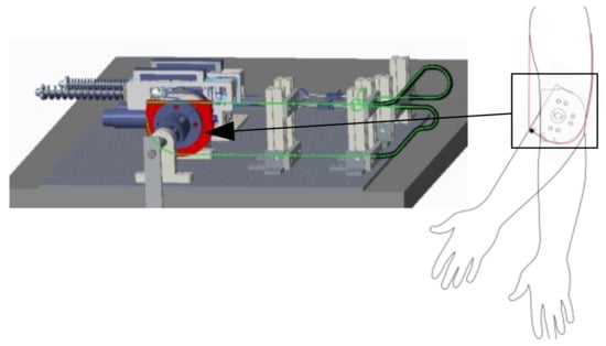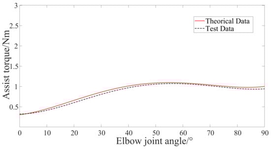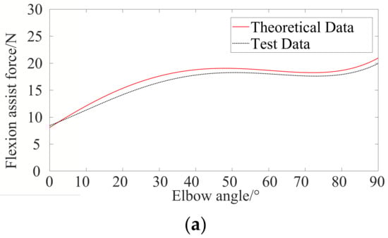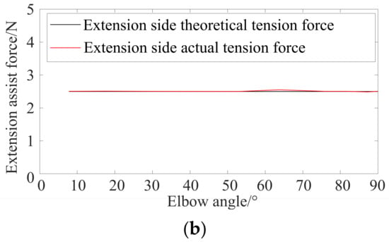 According to the physiological model of elbow joint and the method of redundant muscle force analysis, the extension muscle only provides resistance and plays a stabilizing role when the elbow moves [38]. The force arm of the extension assist cable is set to be a constant 0.040 m for specific person. The stretching force moment is set to be 0.1 Nm, so the force on the extension assist cable actuator is 2.5 N.