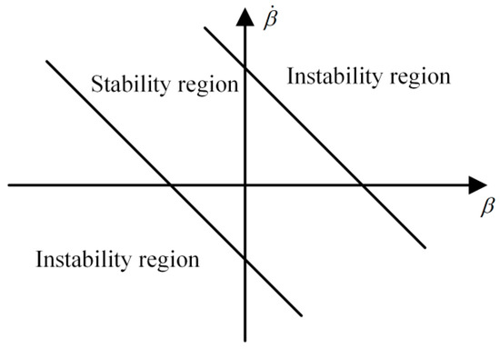 The vehicle phase plane can be divided into ‘stability region’ and ‘instability region’ by Equation (27), as shown in Figure 5. The area ‘stability region’ means vehicle status in this area is safe and stable, while the remaining area is ‘instability region’, which means vehicle status in this area is risky in losing stability and unsafe [25].