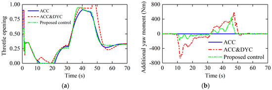 Control outputs: (a) throttle opening; (b) additional yaw moment.