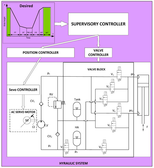 Nowadays, valve controlled hydraulic systems are widely applied in industry such as presses because of good dynamic response. However, the most common drawback of traditional valve-controlled hydraulic systems is low efficiency in many operation points due to throttling control or mismatch power [1,2,3]. To overcome these problems, many works have been conducted and these studies are briefly reviewed as follows.