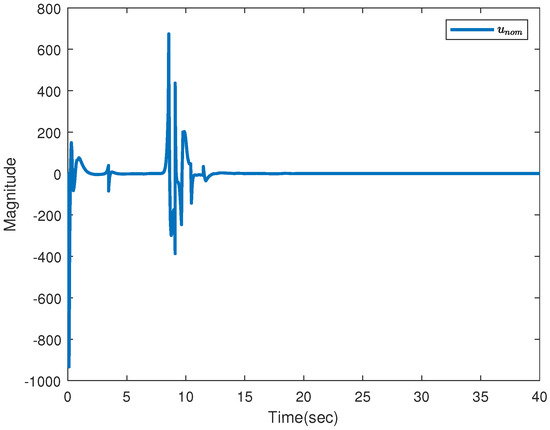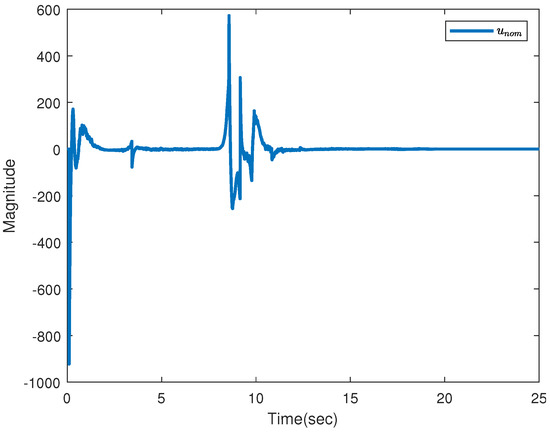 Time history of the nominal control input based on the estimates produced by the observer (16).