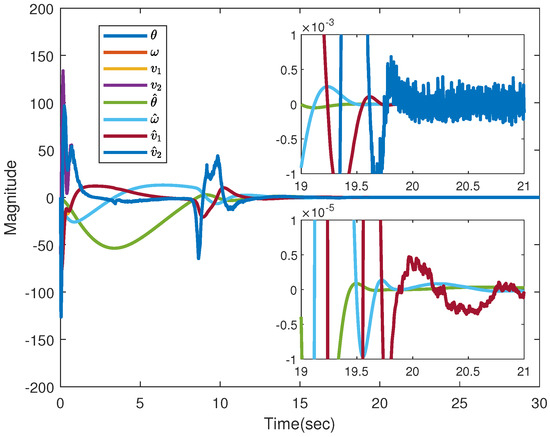 It is assumed that only the variable can be measured. Therefore, the observer (16) is used to reconstruct the unmeasured state variables, and the applied control input (21) and (22) is based on the estimates produced by the observer.