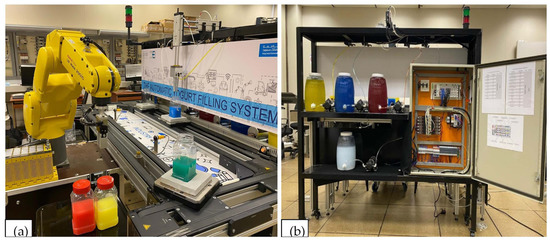 An automatic yogurt filling system has been implemented in two phases as per IR 4.0 protocols during the present research project. The preliminary details of the system and modifications made during the first automation can be found in the published literature [43,44]. Therefore, this paper first introduces the system components in detail, followed by the detailed functioning of the system.