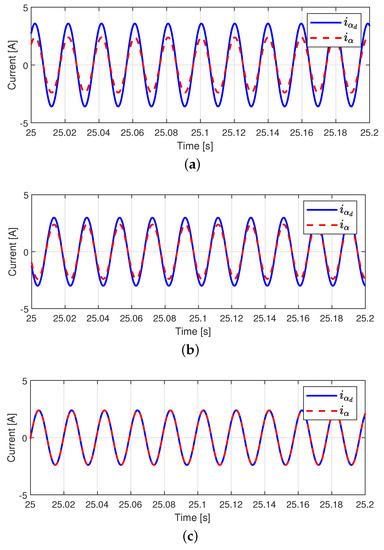 Current tracking performance in simulation. (a) Case S.1. (b) Case S.2. (c) Case S.3.